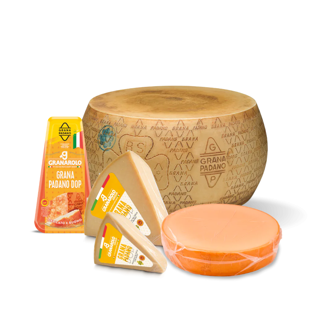 Versátil e sofisticado, o Grana Padano DOP é ideal para finalizar massas, risotos e saladas, além de ser perfeito para compor tábuas de queijos. Sua maturação desenvolve aroma marcante e excelente cristalinidade, características típicas dos grandes queijos italianos.