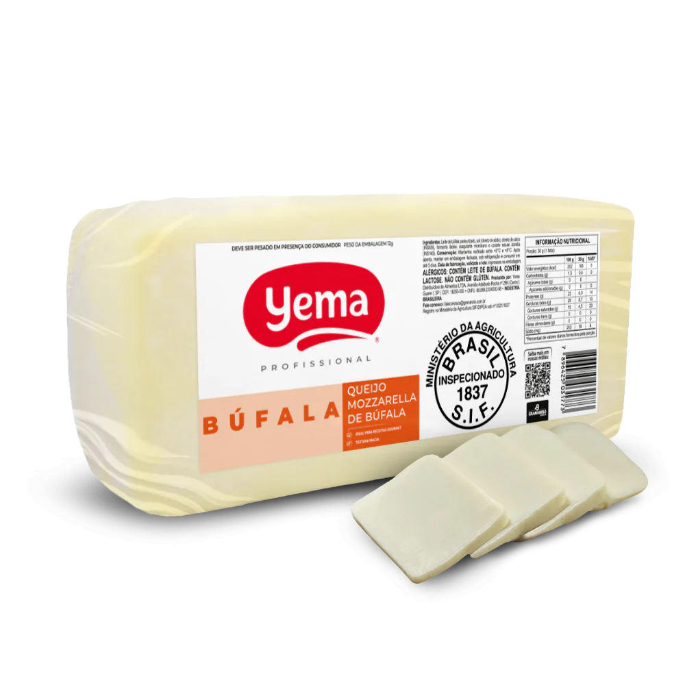 Feita com leite de búfala de primeira qualidade, a Mozzarella de Búfala da Yema é fonte de cálcio e proteína. Possui textura macia e consistência firme, sabor suave e levemente adocicado e cor branca.