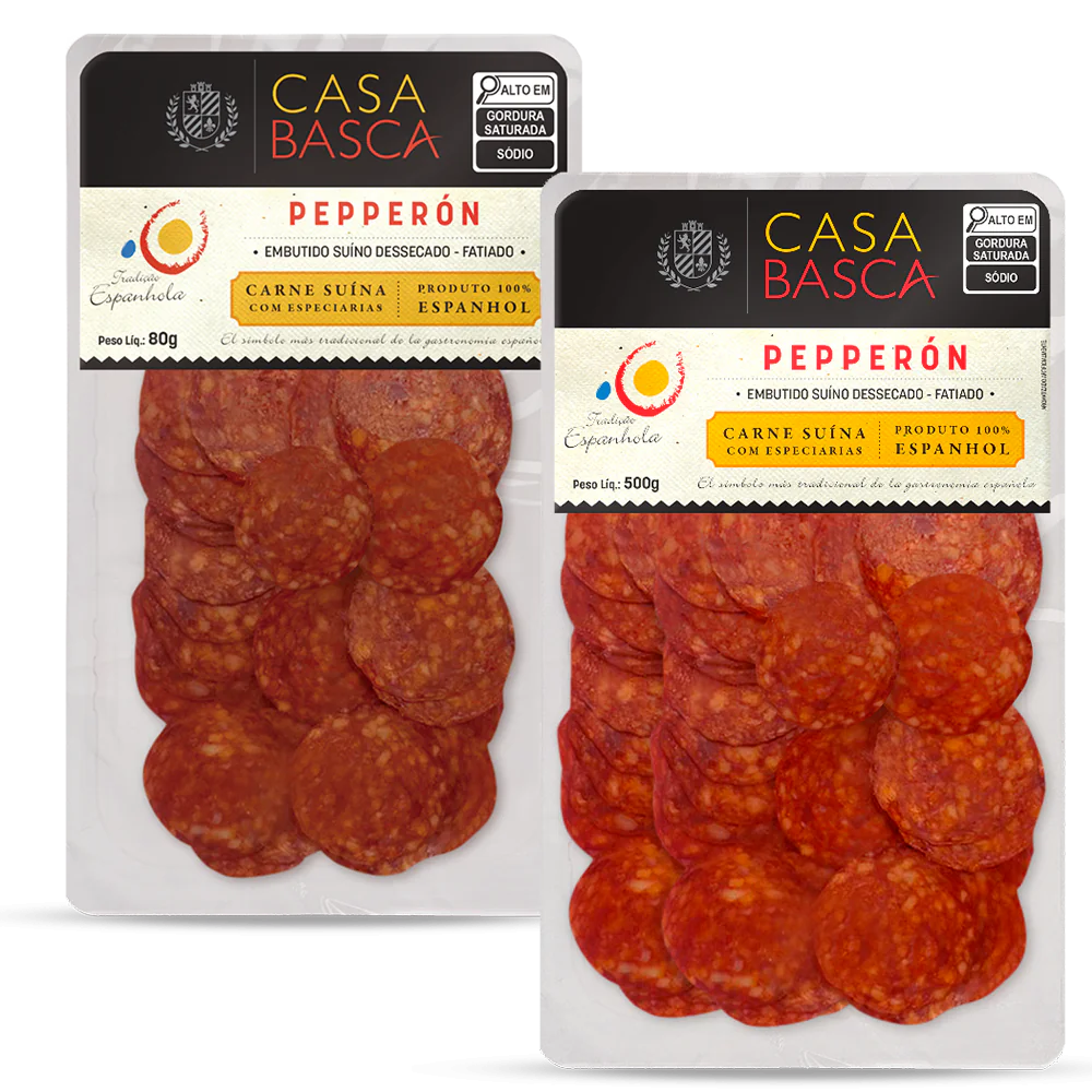 Descubra o Pepperón, um embutido feito com carne suína que se destaca pelo seu formato fino e coloração vibrante, bem avermelhada. Com moagem média, ele apresenta um sabor pronunciado e uma textura leve, tornando-se um ingrediente ideal para pizzas e outros pratos. Adicione um toque especial às suas receitas com o sabor inconfundível do Pepperón!