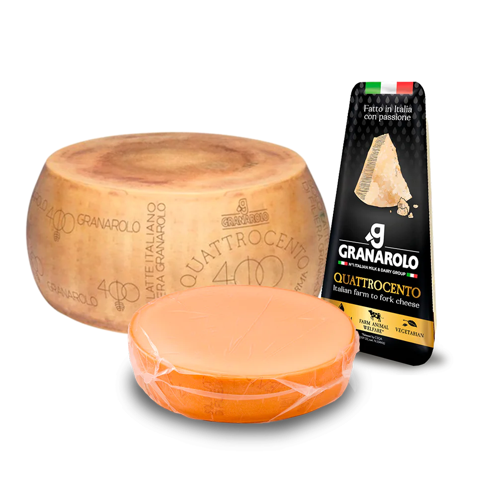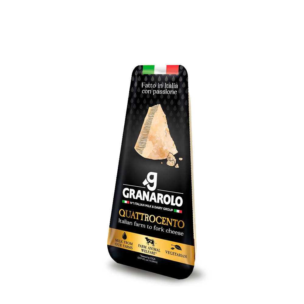 A Granarolo deu forma ao leite proveniente de suas fazendas: com mais de 400 litros de leite italiano da cadeia de abastecimento da Granarolo, nasceu o Quattrocento, produzido em caldeiras de cobre na renomada região de Parma, Itália. Maturado por 12 meses em prateleiras de madeira, este queijo possui o Certificado de Garantia de Bem-Estar Animal.