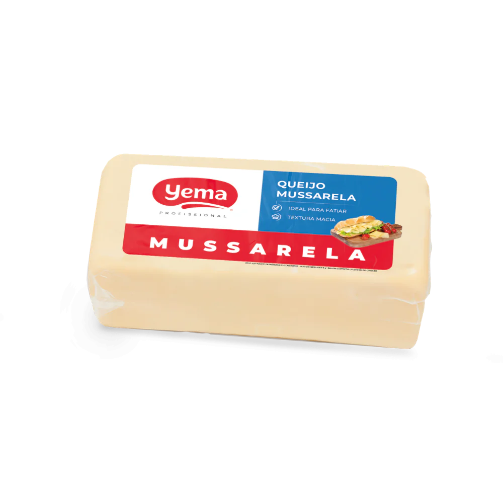 Mussarela Yema em Barra é um queijo de massa filada, textura macia ideal para fatiamento e excelente capacidade de derretimento, proporciona uma cobertura uniforme, elasticidade na medida certa e o apetitoso efeito “puxa-puxa”. Seu sabor lácteo suave agrada a diferentes paladares e não compete com os demais ingredientes, tornando-a perfeita para pizzas, sanduíches, gratinados e diversas receitas da cozinha profissional.