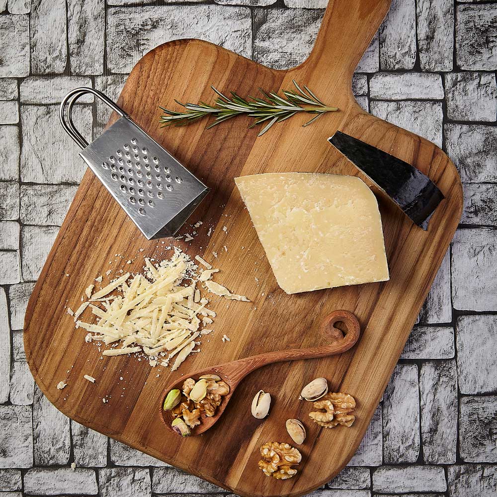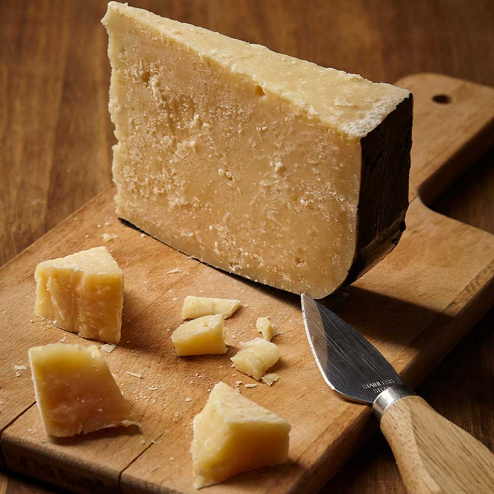 Disponível em peça inteira e fração, é versátil para diferentes ocasiões — desde compor tábuas de queijos sofisticadas até ser ralado sobre massas, risotos e sopas, elevando o sabor de qualquer prato.