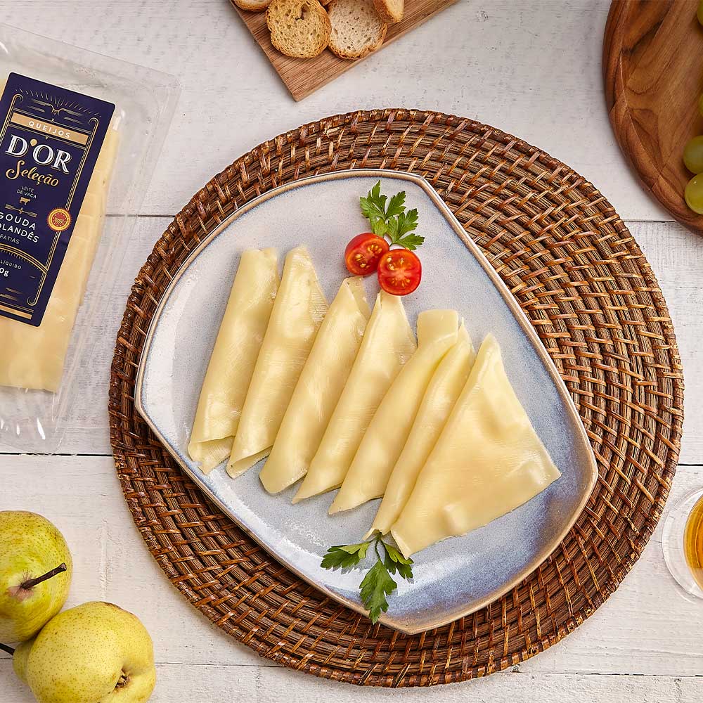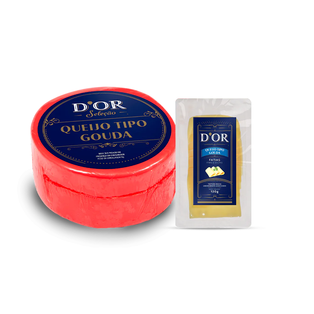 Disponível nas versões fração e peça, o Queijo Tipo Gouda D’or é ideal para diferentes momentos e necessidades. D’or — Seu moment gourmet!