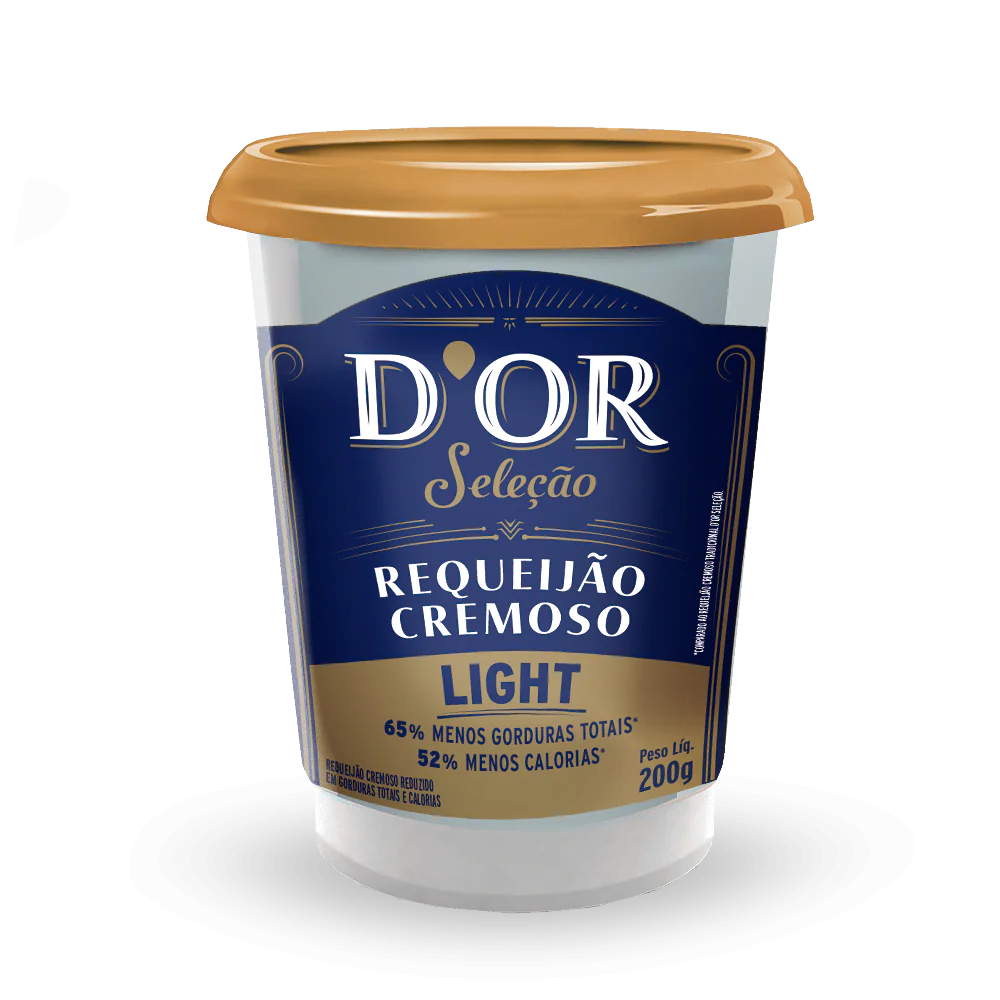 Com textura aveludada e sabor suave, o Requeijão Cremoso Light D’or Seleção é a escolha perfeita para quem busca equilíbrio entre prazer e leveza no cotidiano. Elaborado com rigoroso controle de qualidade, possui 29% menos gorduras totais em comparação à versão tradicional, sem abrir mão da cremosidade que conquista desde a primeira colherada.