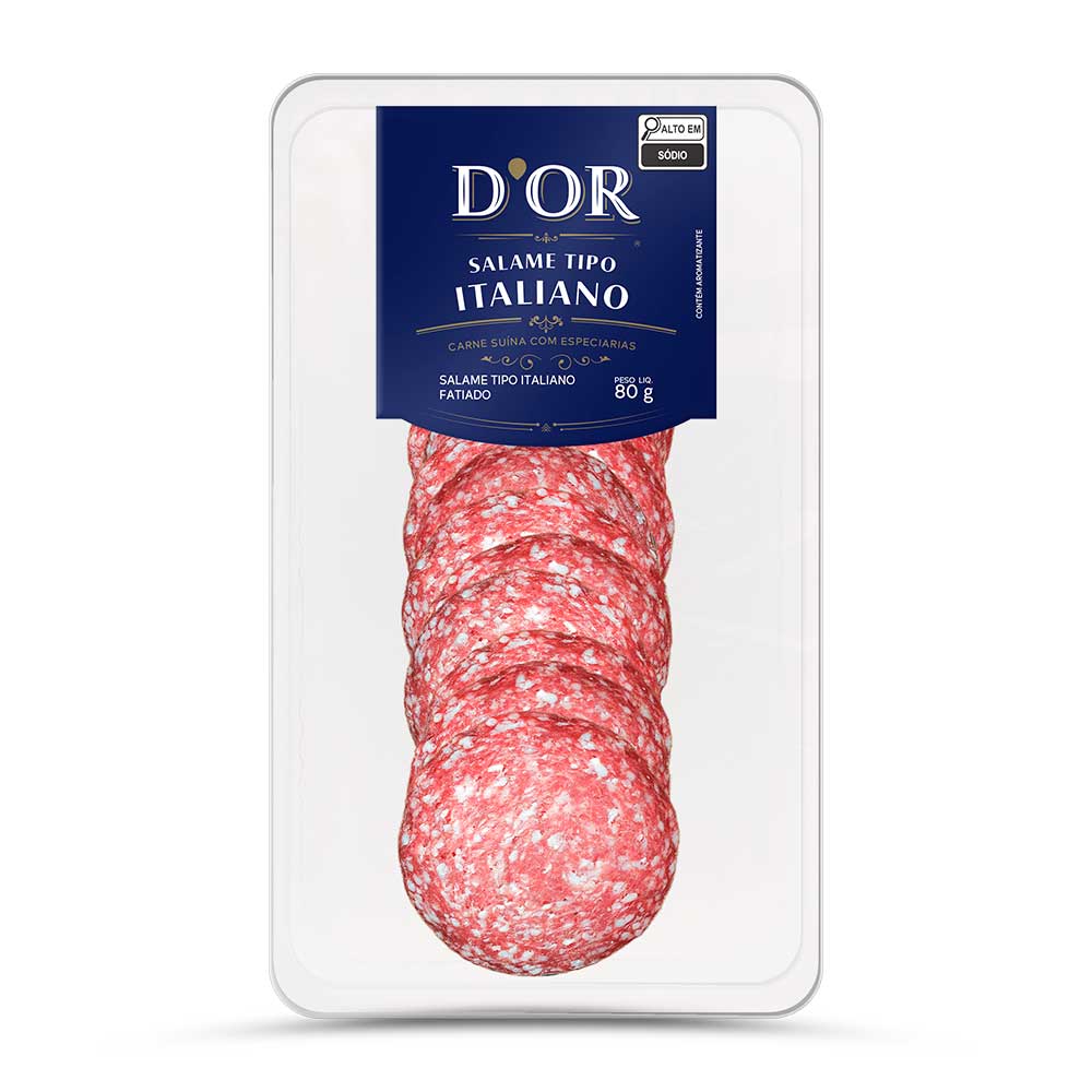 O Salame Tipo Italiano D’or é elaborado com cortes de carnes suínas selecionadas, temperado com vinho e especiarias como pimenta, alho e coentro. Sua defumação lenta e natural preserva os aromas, garante uma textura ideal e entrega um sabor marcante, perfeito para os apreciadores de charcutaria tradicional.