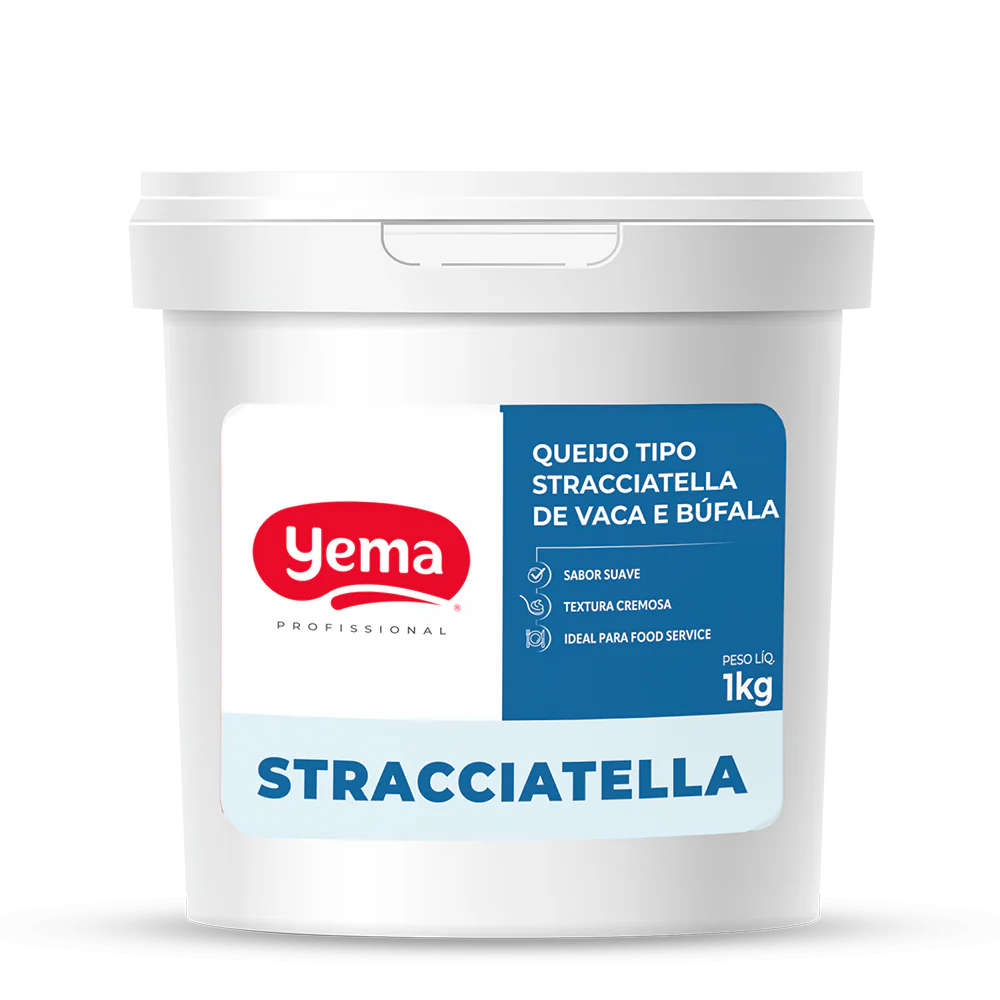 A Stracciatella é um legítimo queijo italiano feito de mozzarella desfiada acrescida de creme de leite, de sabor suave e textura macia e cremosa. É elaborada a partir de uma cuidadosa e balanceada combinação de leite de búfala e leite bovino. A Stracciatella é o recheio tradicional italiano para a Burrata.