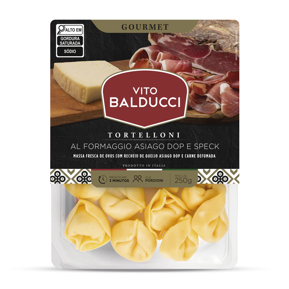A linha Gourmet de massas frescas da Vito Balducci traz ao Brasil sabores exclusivos da tradição italiana. O tortelloni, com seu formato que lembra um pequeno anel, é a versão maior do clássico tortellini, garantindo mais recheio e sabor em cada mordida.